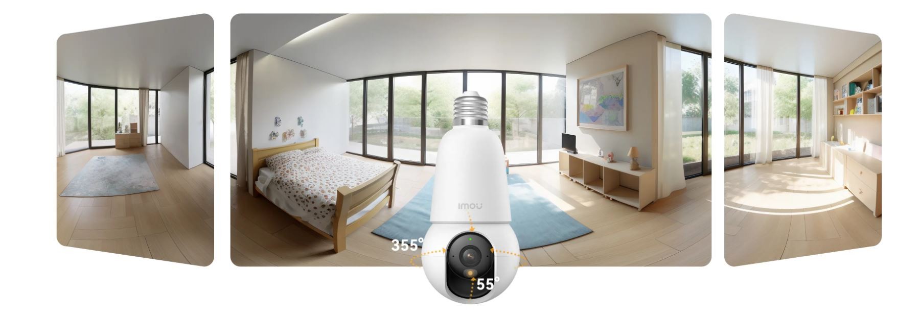Bulb Cam 2C supports 0°-355° horizontal rotation and -5°~ 50° vertical rotation to fully protect your home with a 360° view.